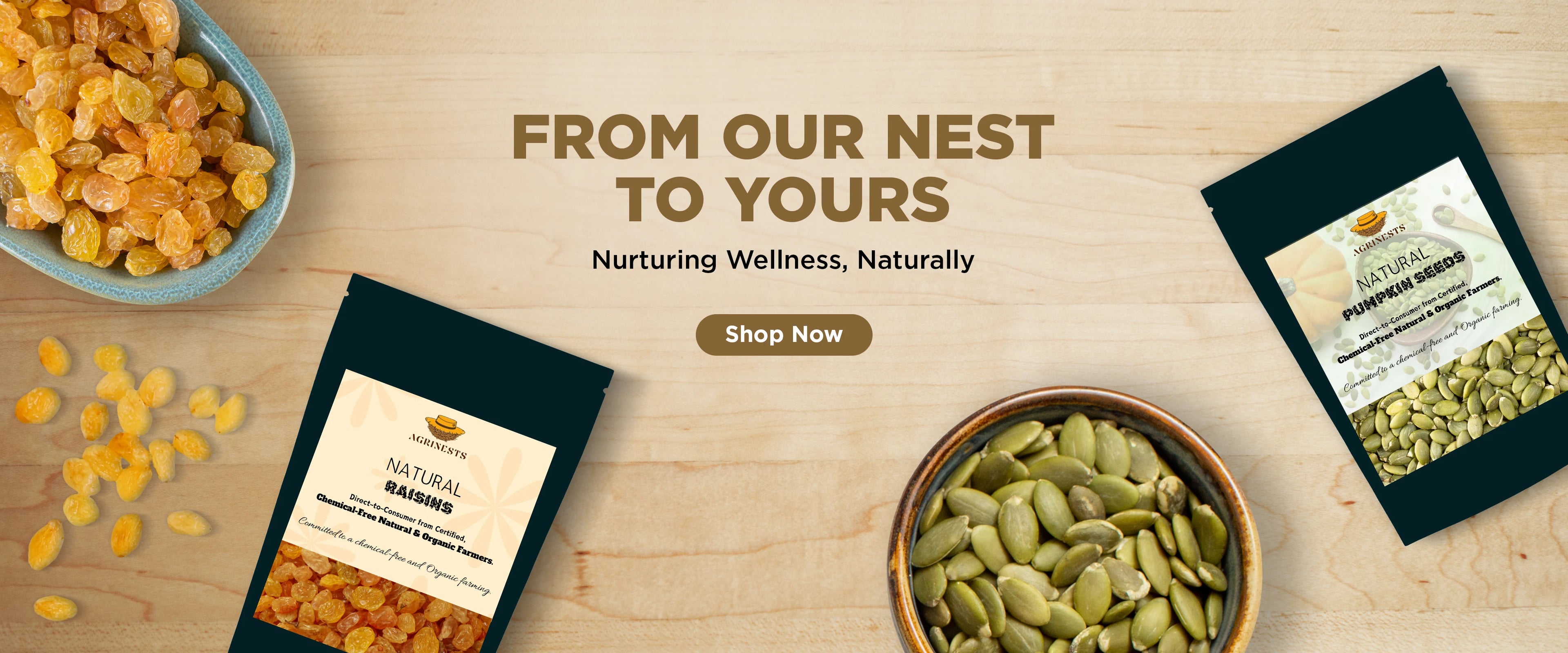 Our ancestors have long demonstrated the wisdom of embracing natural and organic and Natural foods for a healthy and fulfilling life. With our premium-quality products, you can regain your health without sacrificing taste, enjoying organic offerings straight from the farm to your table. In today's world, prioritizing a healthy lifestyle and overall well-being has become a global imperative. As modern lifestyles and food sources often contribute to declining health over time, imagine the convenience of having the finest quality organic food products like sugar, salt, spices, flour, and grains delivered right to your doorstep with just a few clicks. It's an exciting and delightful prospect, isn't it? At AgriNests Organics, we are committed to making the organic, Natural and Chemical free lifestyle accessible and affordable for everyone. As a premier organic and Natural food store, we offer a curated selection of top-quality organic and Natural groceries that are meticulously sourced and free from harmful chemicals to promote your health and happiness. With years of experience and a solid reputation in the industry, we are dedicated to providing you with every food product needed to support your sustainable culinary aspirations. Our diverse range of daily essentials is guaranteed to meet the highest standards of quality and safety, all available through a convenient online platform. As one of the leading organic retailers, we also prioritize empowering local farmers, ensuring that you receive the freshest and most organic produce from across the county. Inspired by ancient farming practices and a commitment to a sustainable lifestyle, AgriNests Organics aims to combat climate change, improve soil quality, and support rural livelihoods with every purchase. By choosing to buy organic groceries online from AgriNests Organics, you're not just prioritizing your health—you're also contributing to a brighter future for generations to come.