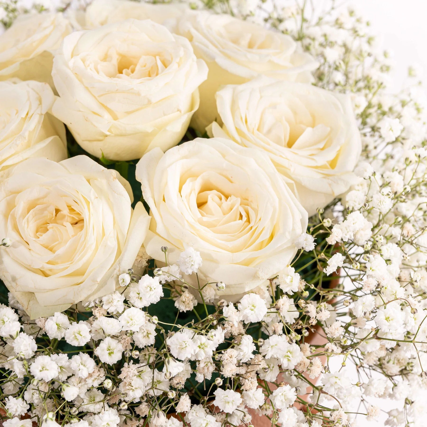 - Floral Arrangement 7 × White Roses & Baby’s Breath (Decorative, non-edible)