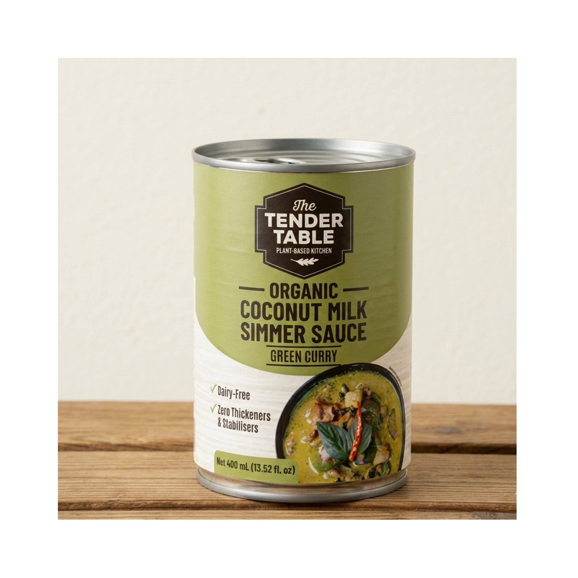 At The Tender Table, we like to keep things simple, just as nature intended. That’s why we’ve taken the hassle out of cooking by combining aromatic herbs & spices with fresh, creamy organic coconut milk to create our Organic Coconut Milk Simmer Sauce – Green Curry. Simmer your favourite veggies, fish, or meat, and enjoy the authentic taste of a delicious green curry in minutes. USAGE INSTRUCTIONS: Shake well before use. Coconut milk naturally separates and solidfies at cold temperatures. To restore a smooth consistency, empty the can, heat the contents, or place the can in lukewarm water.