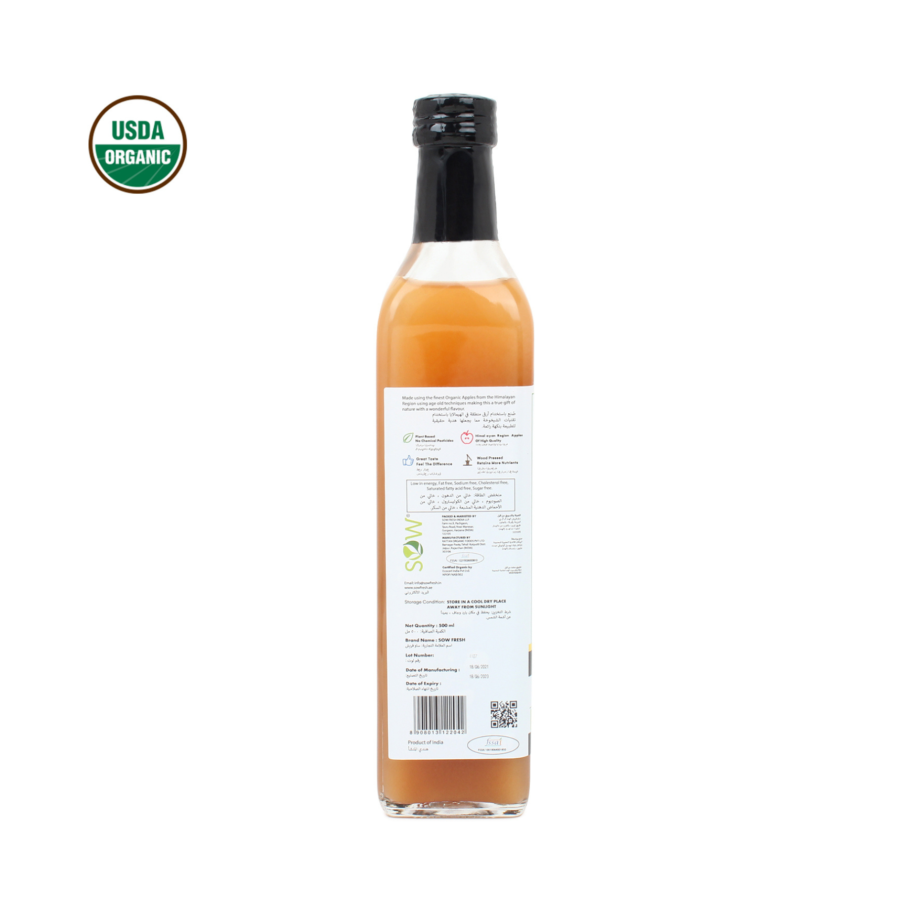 Apple cider vinegar is made from fermented apple juice. It is made by crushing apples, then squeezing out the juice. Bacteria and yeast are added to the liquid to start the fermentation process and in a second fermentation step, the vinegar is obtained by acetic acid-forming bacteria. The raw APPLES used in the making of our oil are sourced from the local farmers of Jammu, promoting our mission of supporting the farmers families around India.